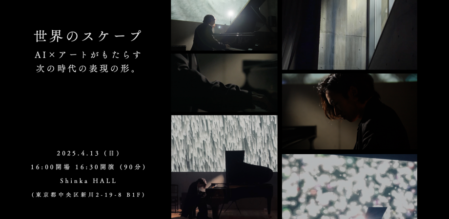 黎明株式会社では2025年4月13日、東京・八丁堀のShinka HALLにて、AI(人工知能)を“共演者”として据えたライブ・コンサート「世界のスケープ」を開催いたしました。本イベントは、弊社代表でありアーティストである 木村 仁星氏による演奏と、演奏に即応してリアルタイムに映像を生成・制御する「反応型映像」の融合をテーマとするもので、AI時代におけるアーティストの新しい表現の形の実証の場となりました。